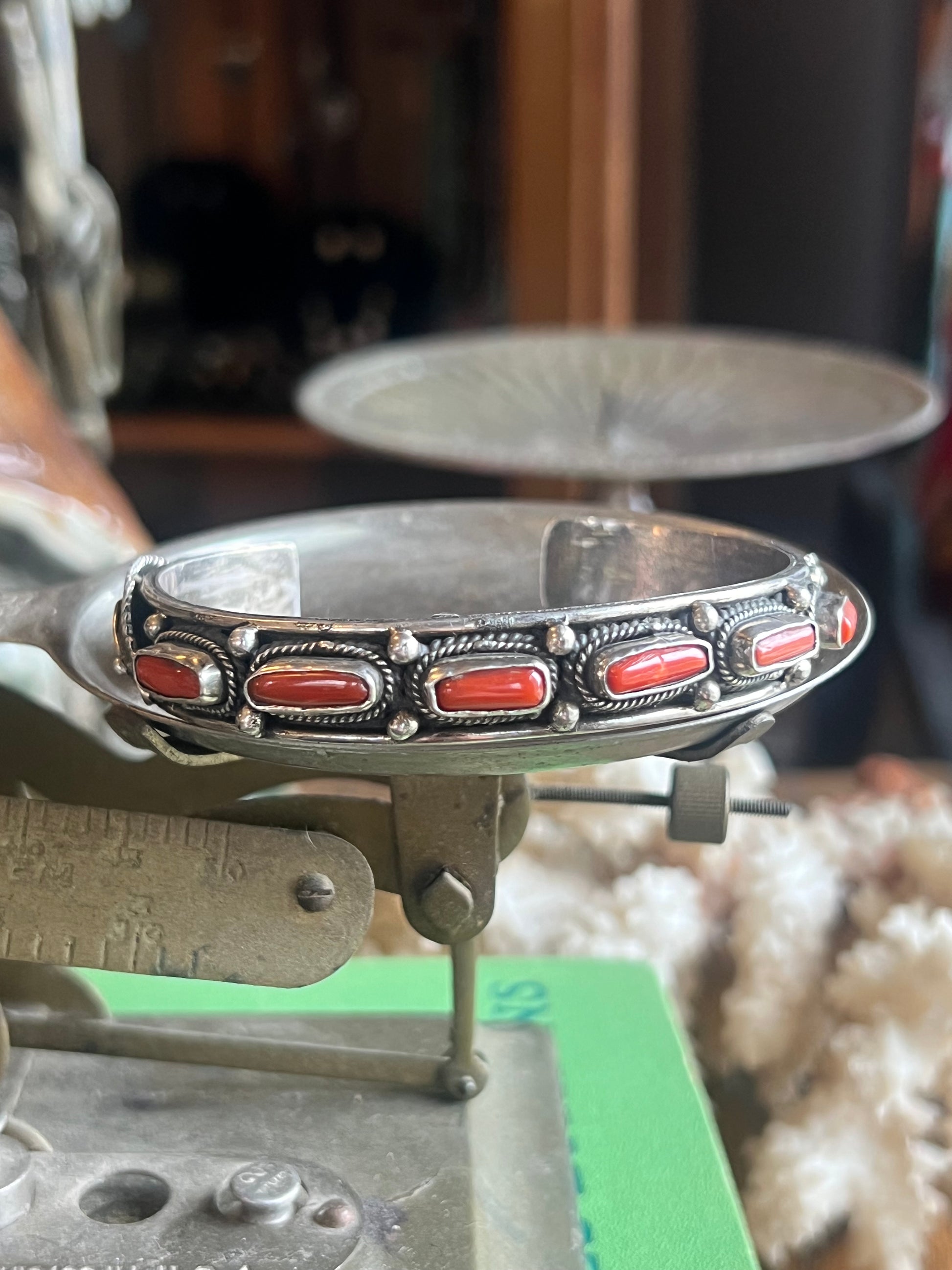 Coral & Sterling Silver Cuff