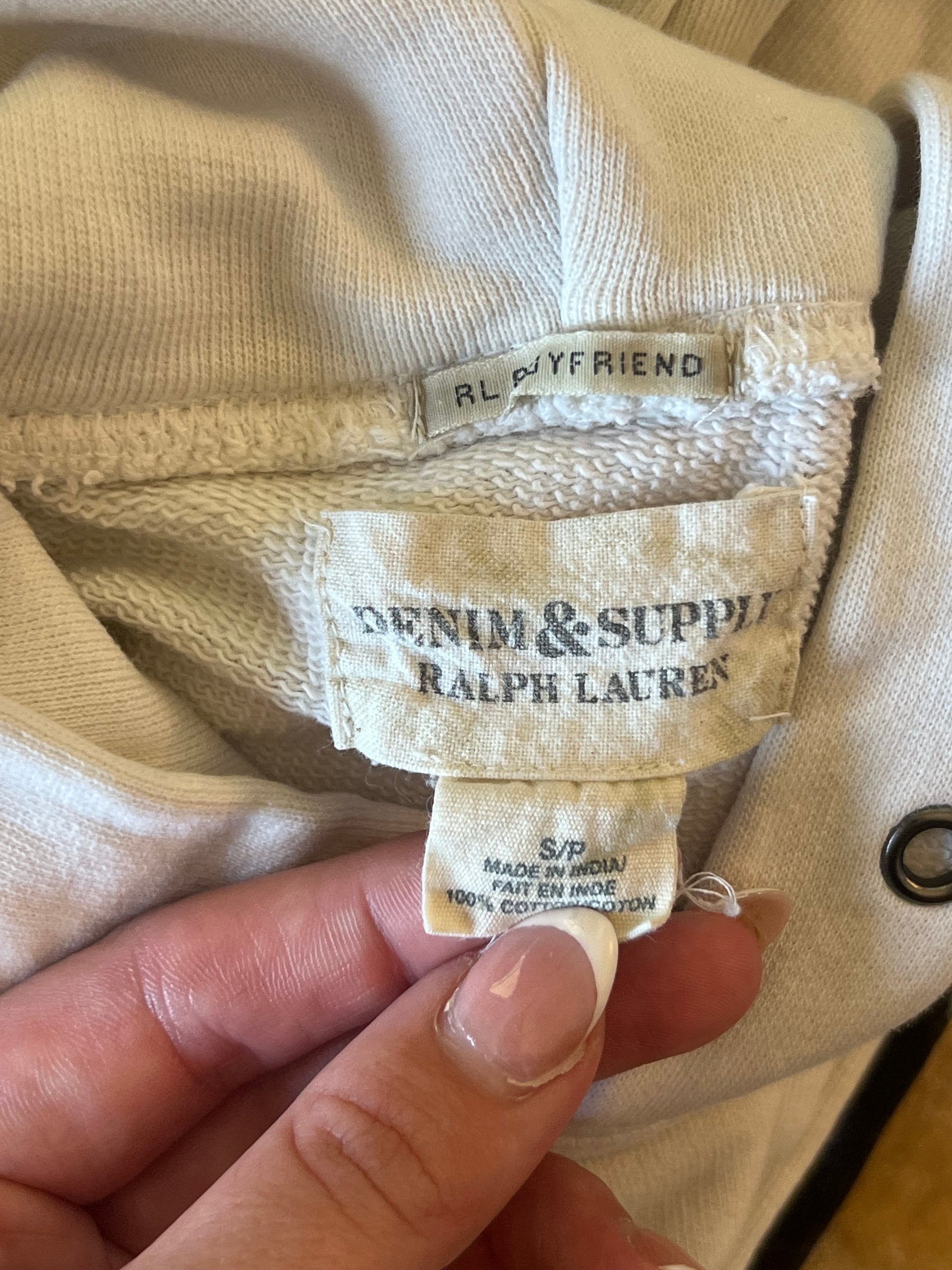 size S | SEE SMALL SPOT ON SLEEVE CUFF IN PICTURE | I absolutely adore this unique & vintage sweatshirt | it is through the RL Boyfriend Clothing Line | shop all jewels too
