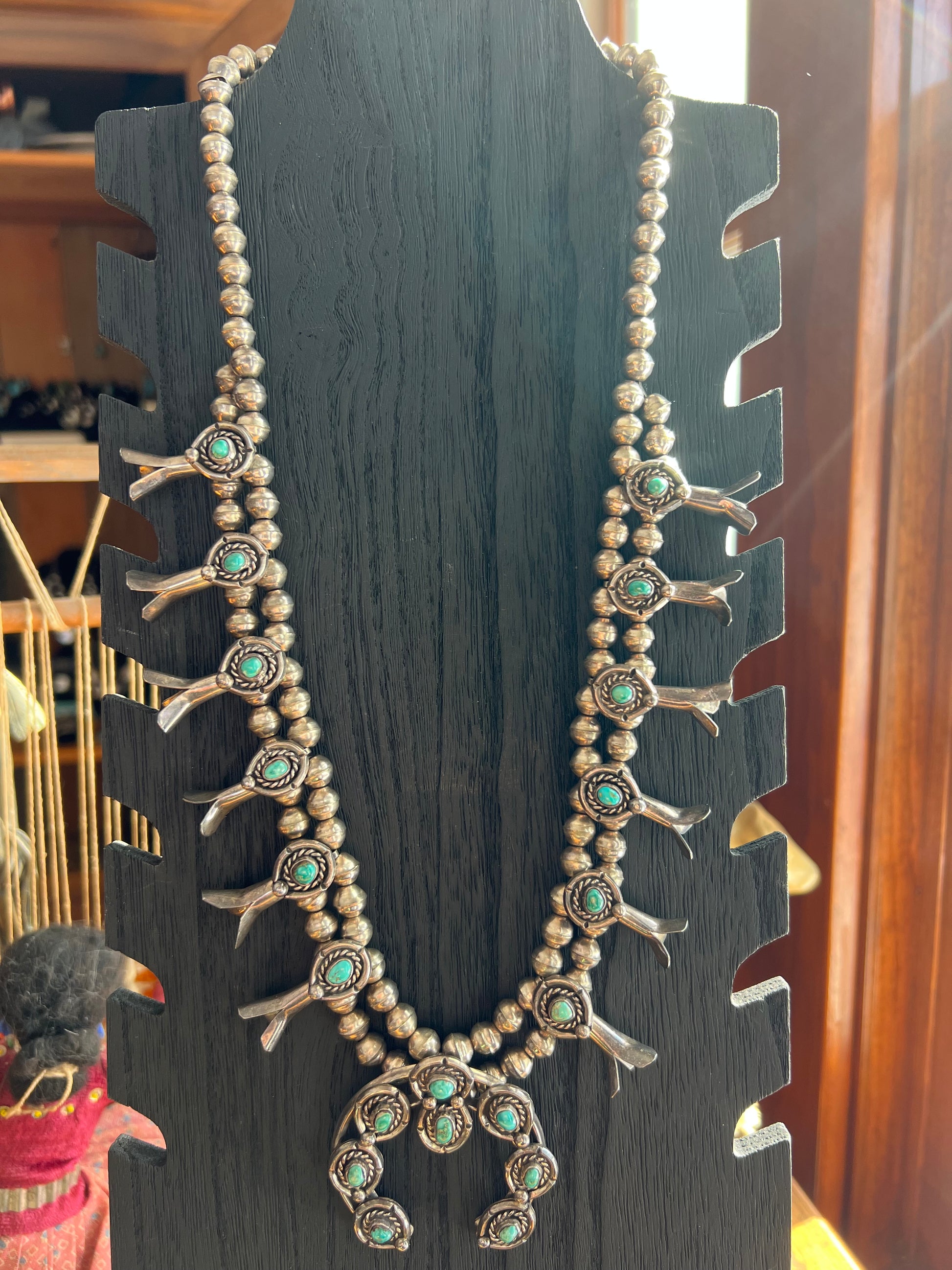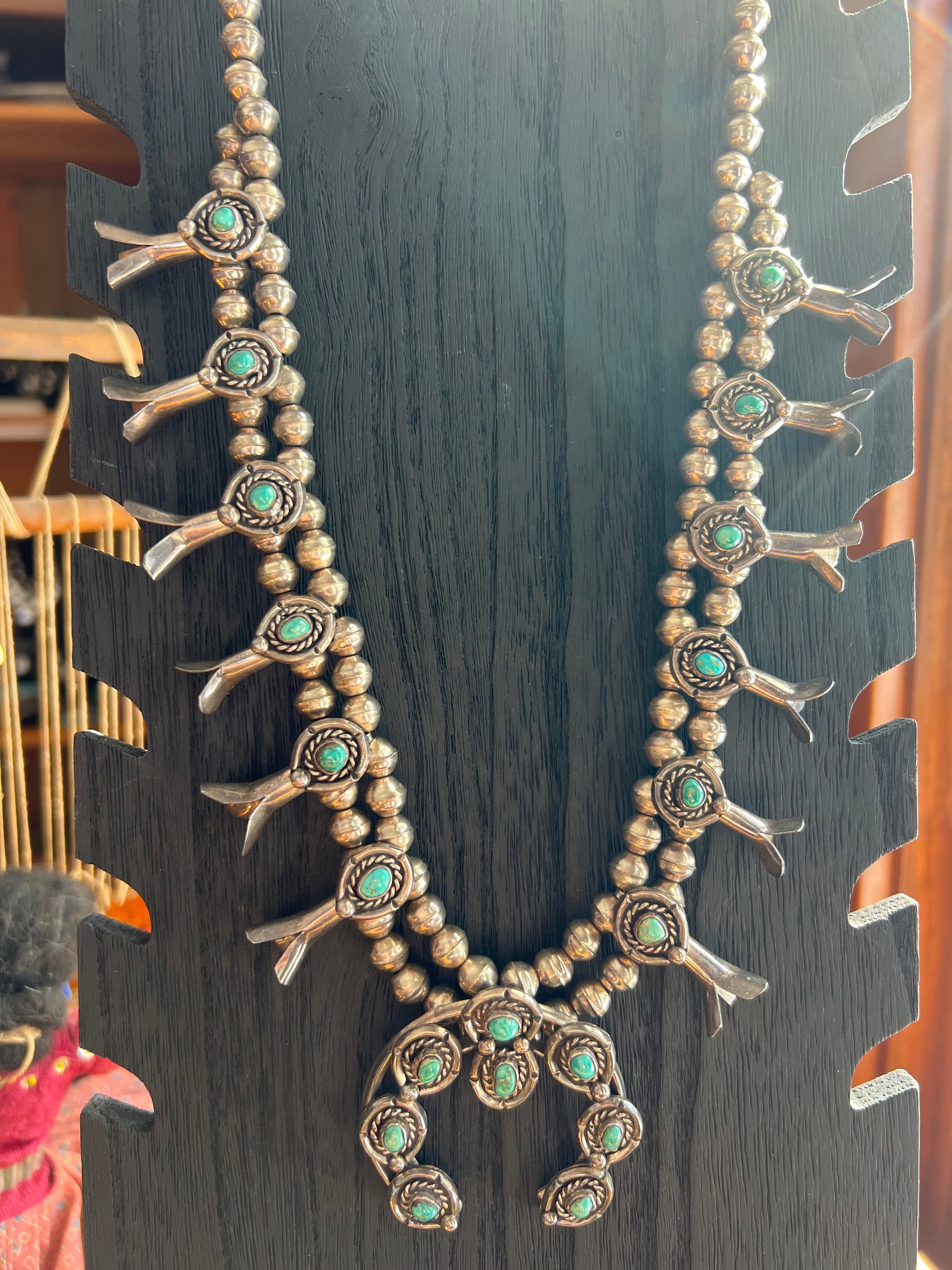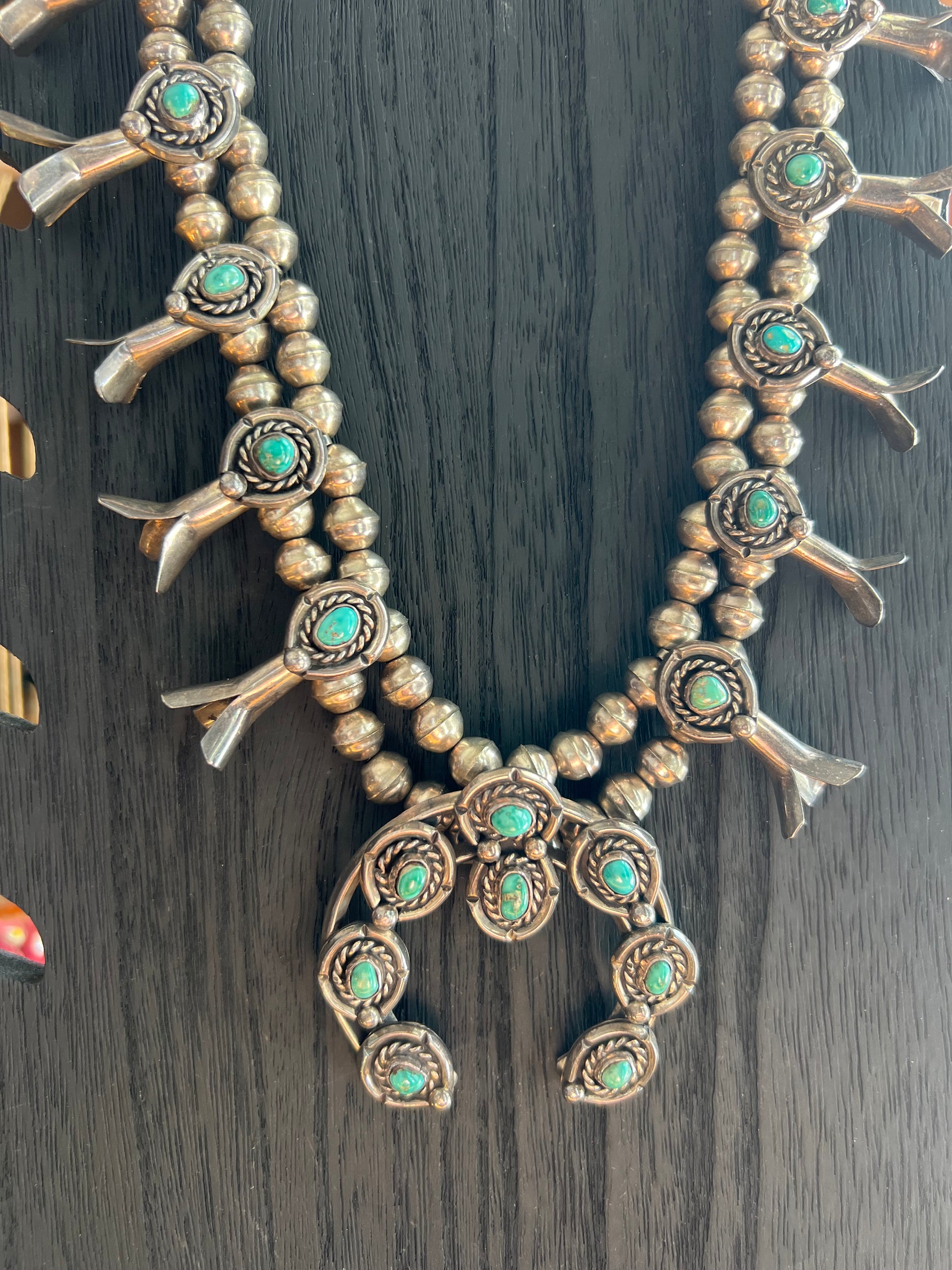 Fox Turquoise 20-Stone Double Strand Squash Blossom