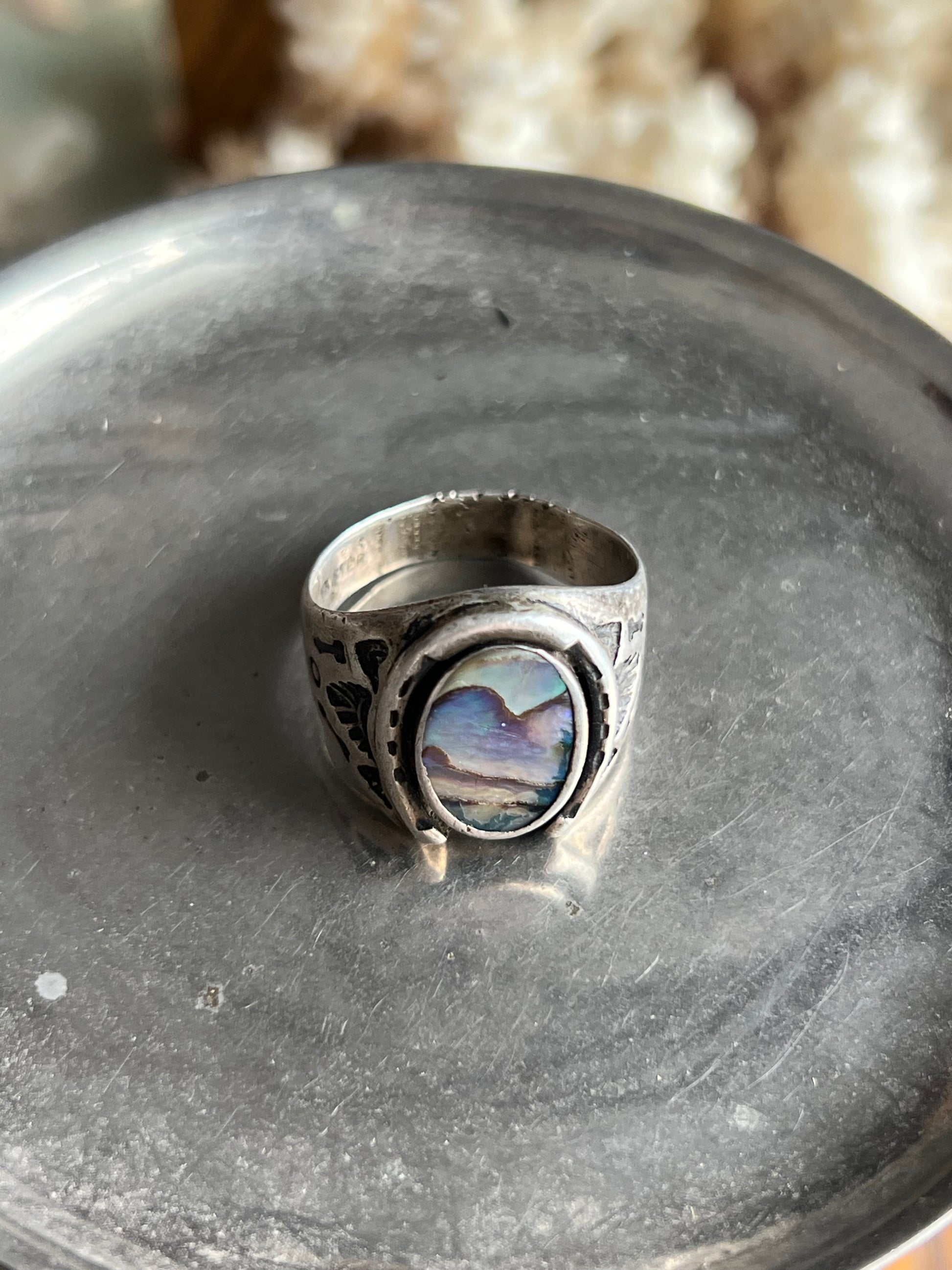 Iridescent Stone with Detailed Band