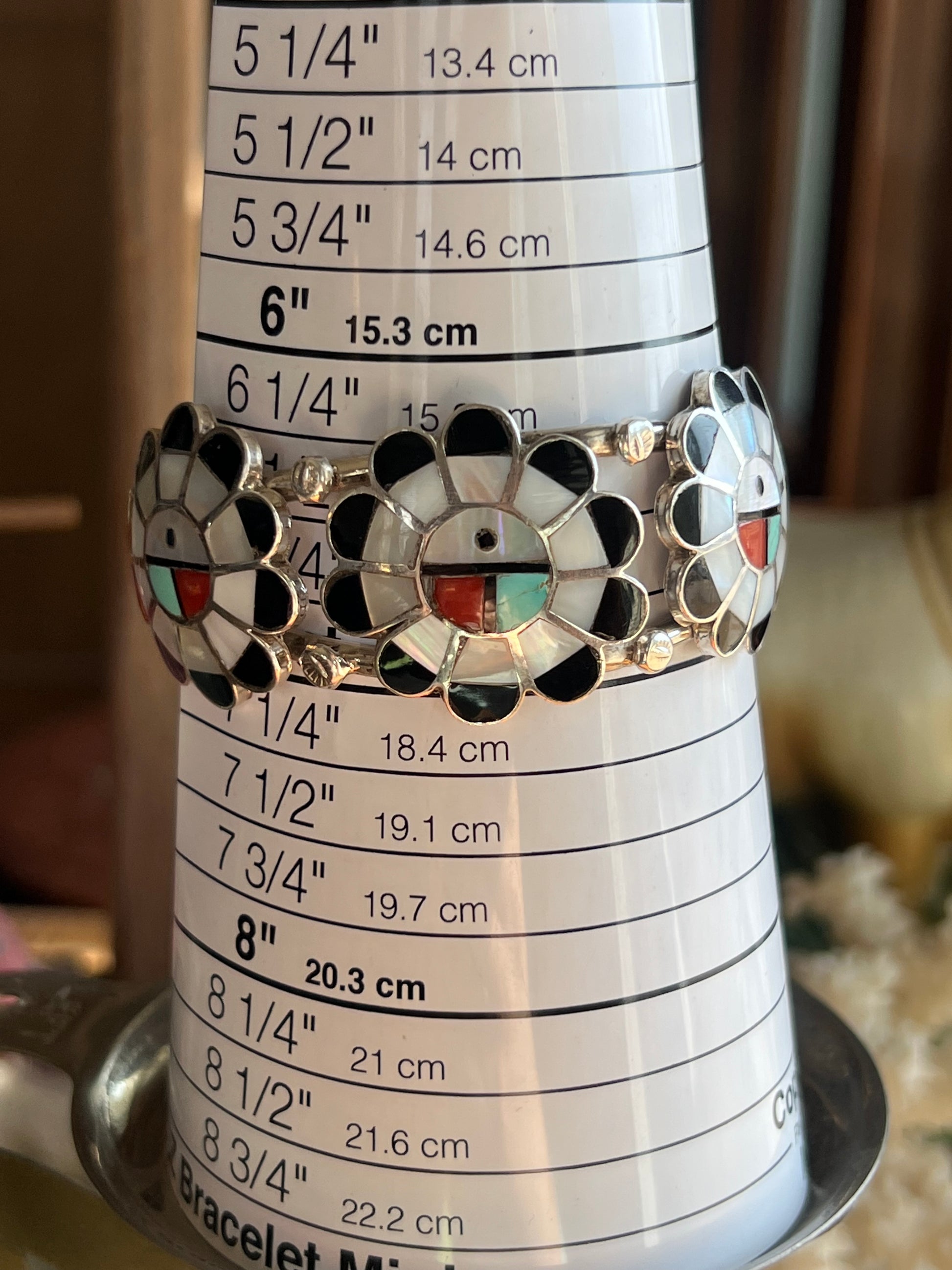 MOP/Onyx/Turquoise/Coral Zuni Inlay Cuff