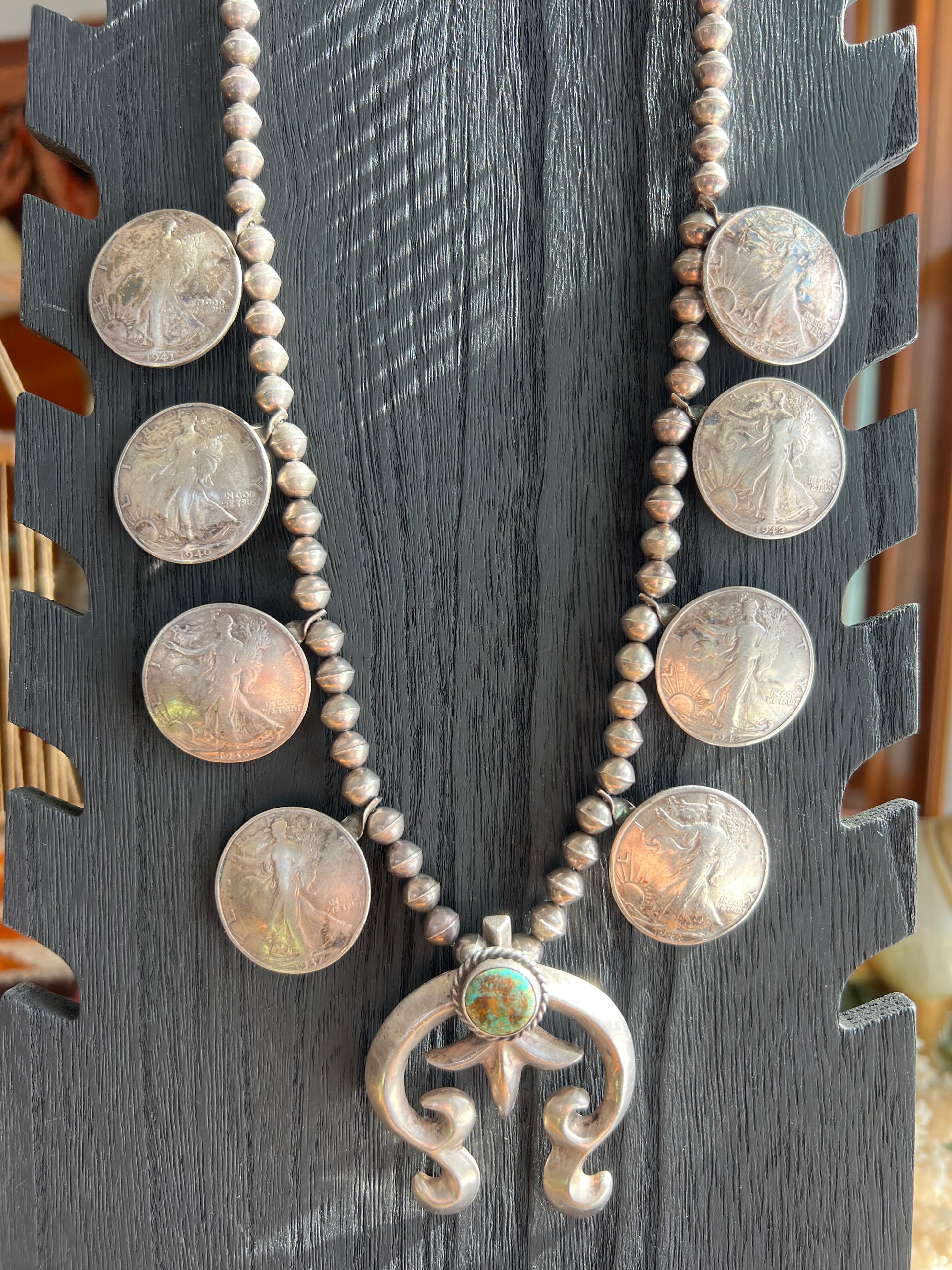 Vintage In God We Trust Coin Squash Blossom with Darling Darlene Stone