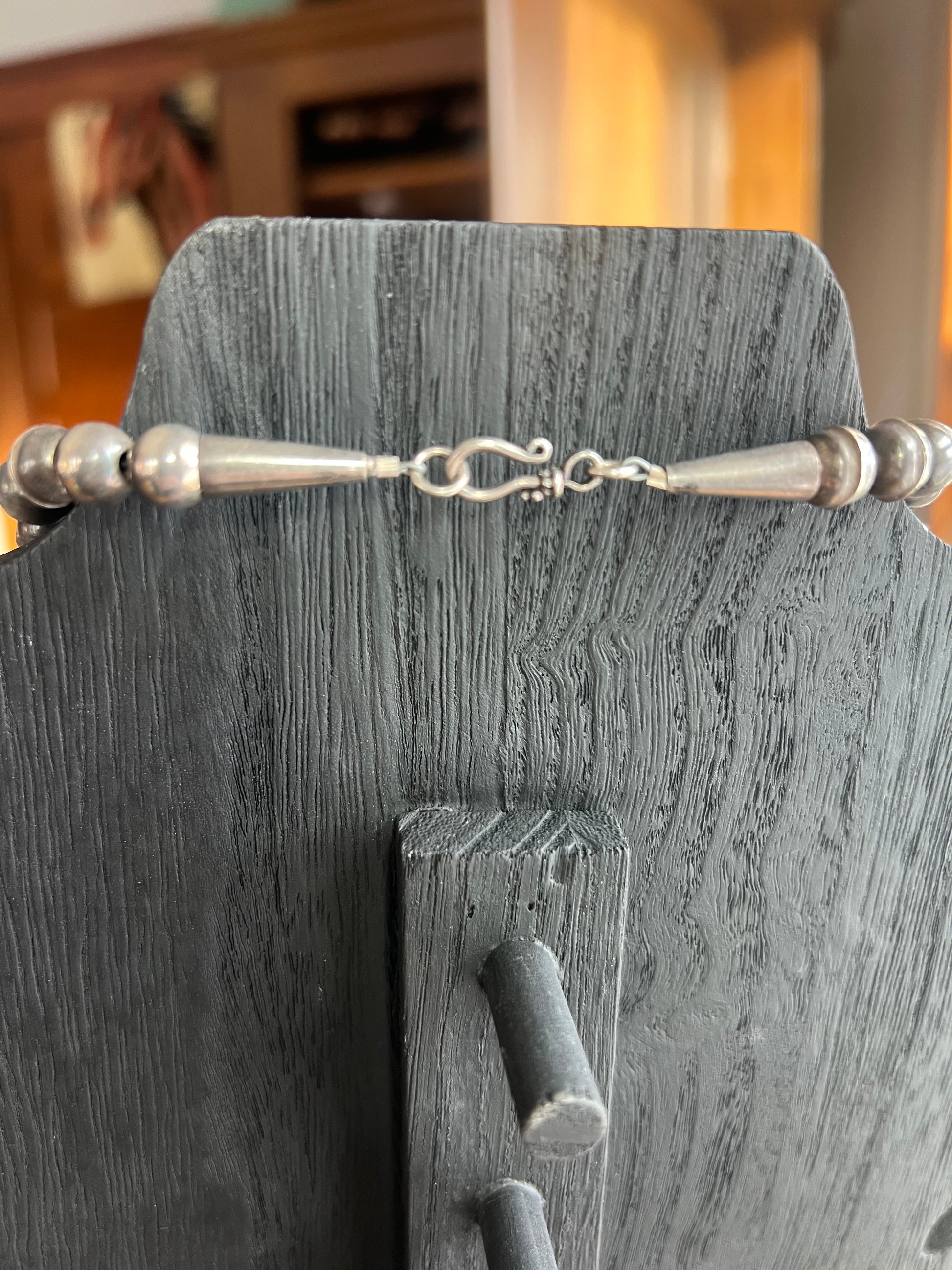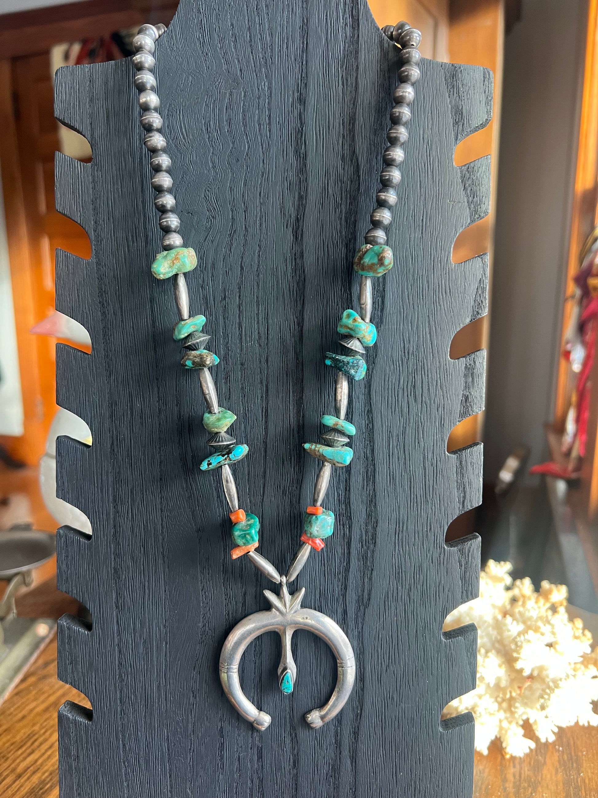 Vintage Navajo Pearl & Raw Chunky Stone Squash Blossom Necklace